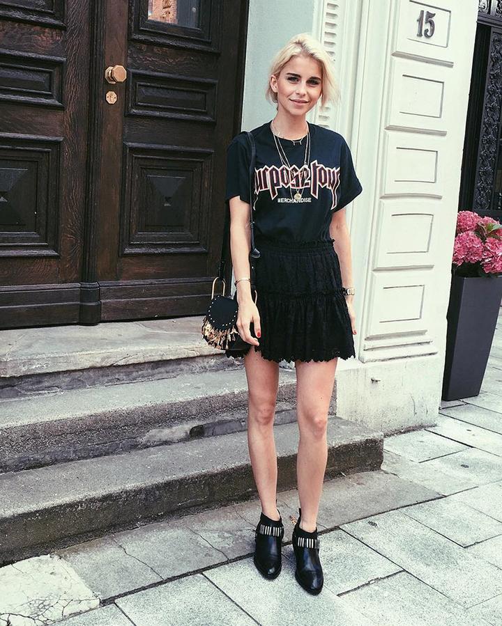 如果你是美式簡約風,那麼一條白色T卹搭配黑色輕盈短裙,顯得又酷又浪。