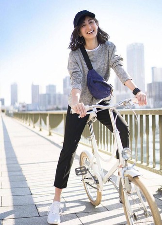 相反這種大印花穿上身,就會成熟很多,也能讓女人的氣質散發出來,配上薑黃色的運動鞋,相當吸睛。
