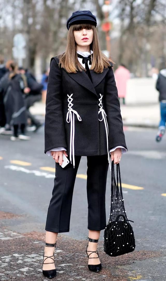 選擇一條開叉的喇叭褲,將珍珠巧妙地點綴在開叉的地方,喇叭褲既有精緻的複古感,珍珠元素的加持又會讓整體look更有女人味。點綴在褲子兩側也非常吸睛,縱向的點綴還可以拉長腿部線條,在視覺上顯得腿比較長。