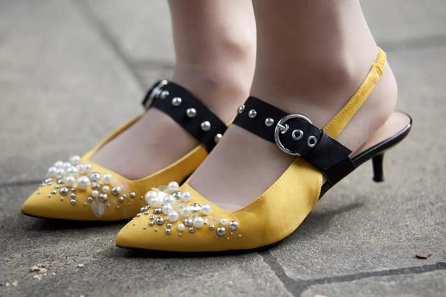 點綴在鞋子上的珍珠非常有精緻感,因為鞋子本身就是一個比較有重量的單品,而珍珠元素的加入可以讓鞋子整體風格更加活潑,也可以在視覺上減輕下半身的重量。如果覺得珍珠的加入讓鞋子更加成熟了,那麼就可以選擇一些比較青春的顏色比如明黃色,和珍珠搭配在一起就會非常有少女心。