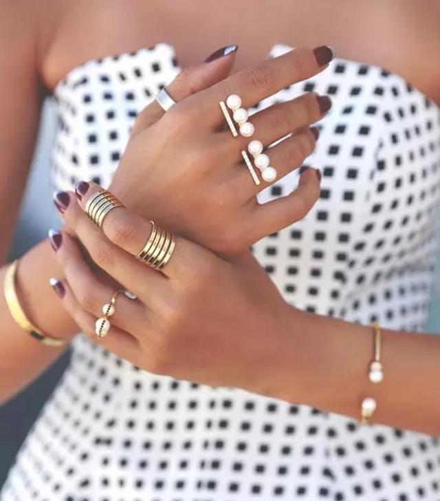 現在的戒指已經和許多飾品一樣變身時尚潮流單品,一枚珍珠戒指就可以讓我們的手部變得更加時髦。如果覺得一顆珍珠太過單調,可以選擇多顆珍珠的疊搭,可以戴出錯落有致的層次感。除了戒指,珍珠手鐲也是一個不錯的選擇,在細細的金屬鐲子上點綴一顆珍珠就能立馬有質感,既不喧賓奪主,又能很好地點綴我們的整體穿搭。