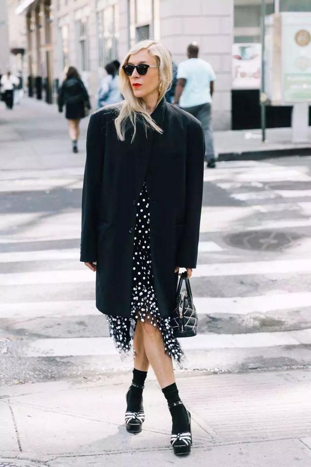 將黑色大衣系上腰帶當裙穿,也不失為一種颯爽英姿。
