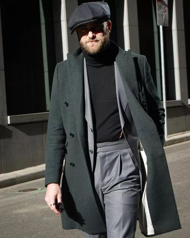 灰色大衣不像黑色大衣那樣沉悶,也不似駝色大衣那樣挑膚色,它是百搭的。因而得到很多男士的偏愛。