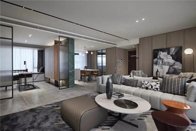 近些年大平層開始走進人們的視野,成為高端精英人士的置業選擇。為什麼有錢人都喜歡買大平層?最主要的原因是大平層實現了生活、辦公、娛樂、社交多元化等生活方式的同層整合,所以大平層也被稱為“扁平化別墅”。本案為200㎡輕奢風大平層,整個空間採用大開間的空間格局,實力演繹高級輕奢的大宅範兒。