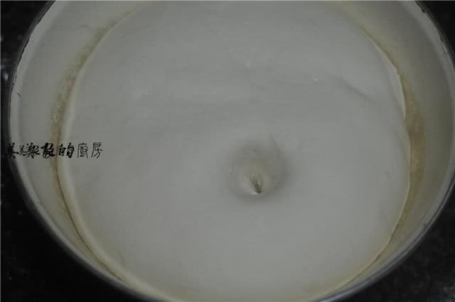 如果用手撥開麵團,裡面是那種密密麻麻的蜂窩狀,如果是這種狀態,就說明第一次發酵已經很成功了。