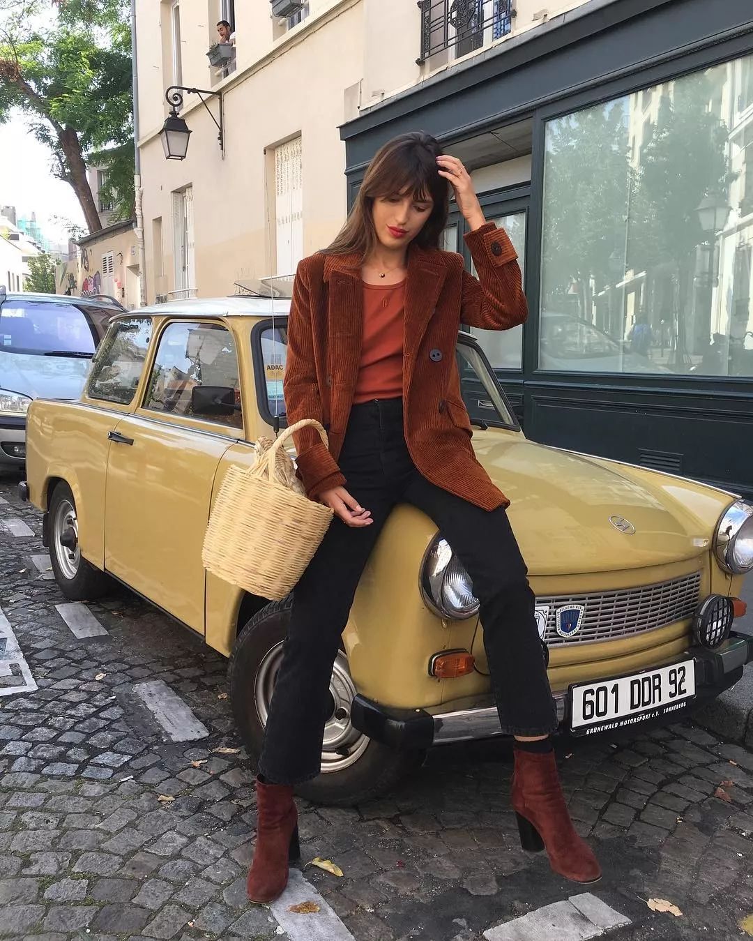 燈芯絨的褲子給人復古的感覺,同時還有點法蘭西的浪漫。