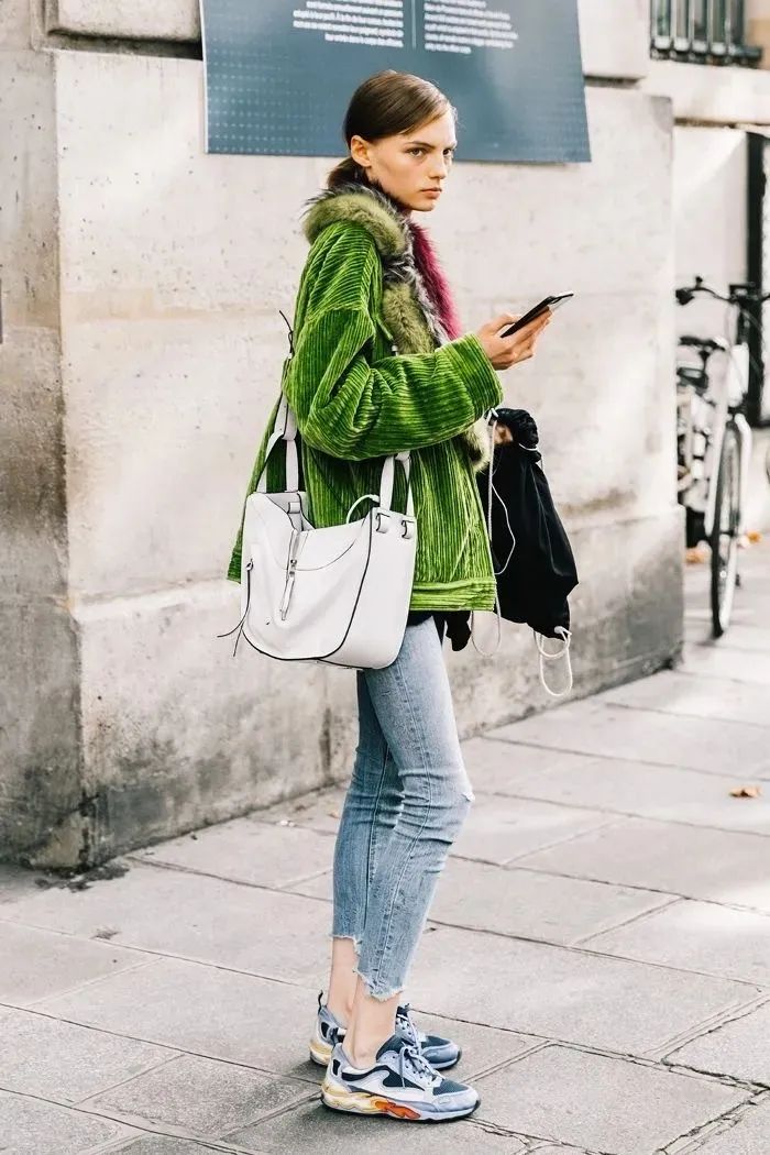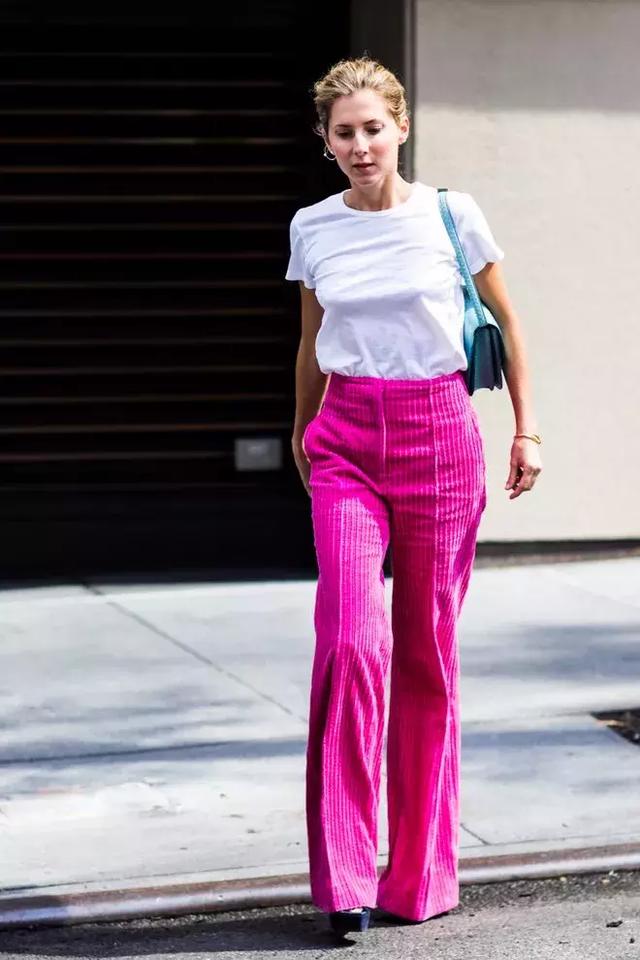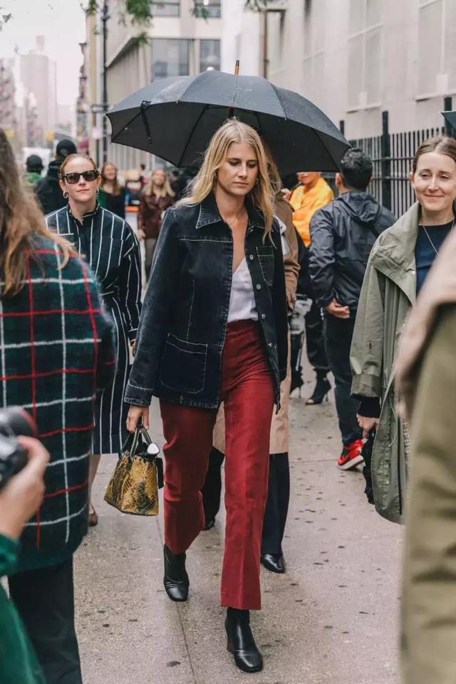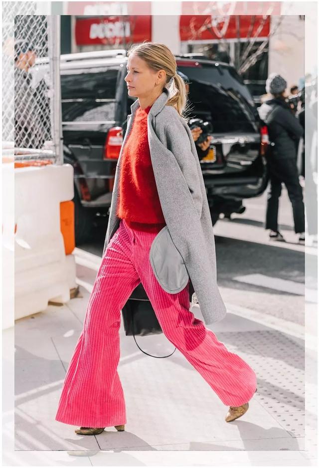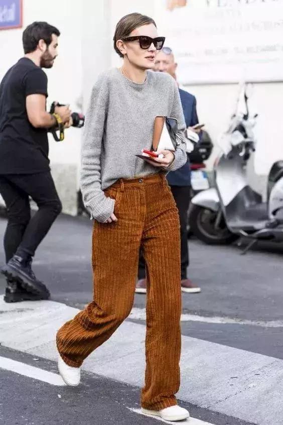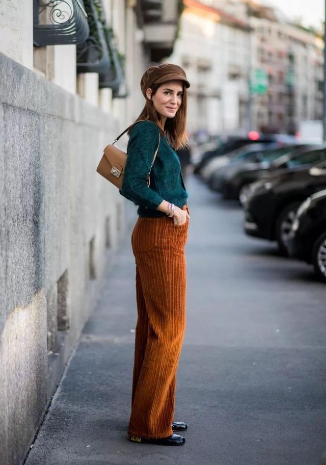 如果對下半身的身材足夠自信,還可以試試彩色燈芯絨褲子。這個季節,能打破沉悶,增添亮點。