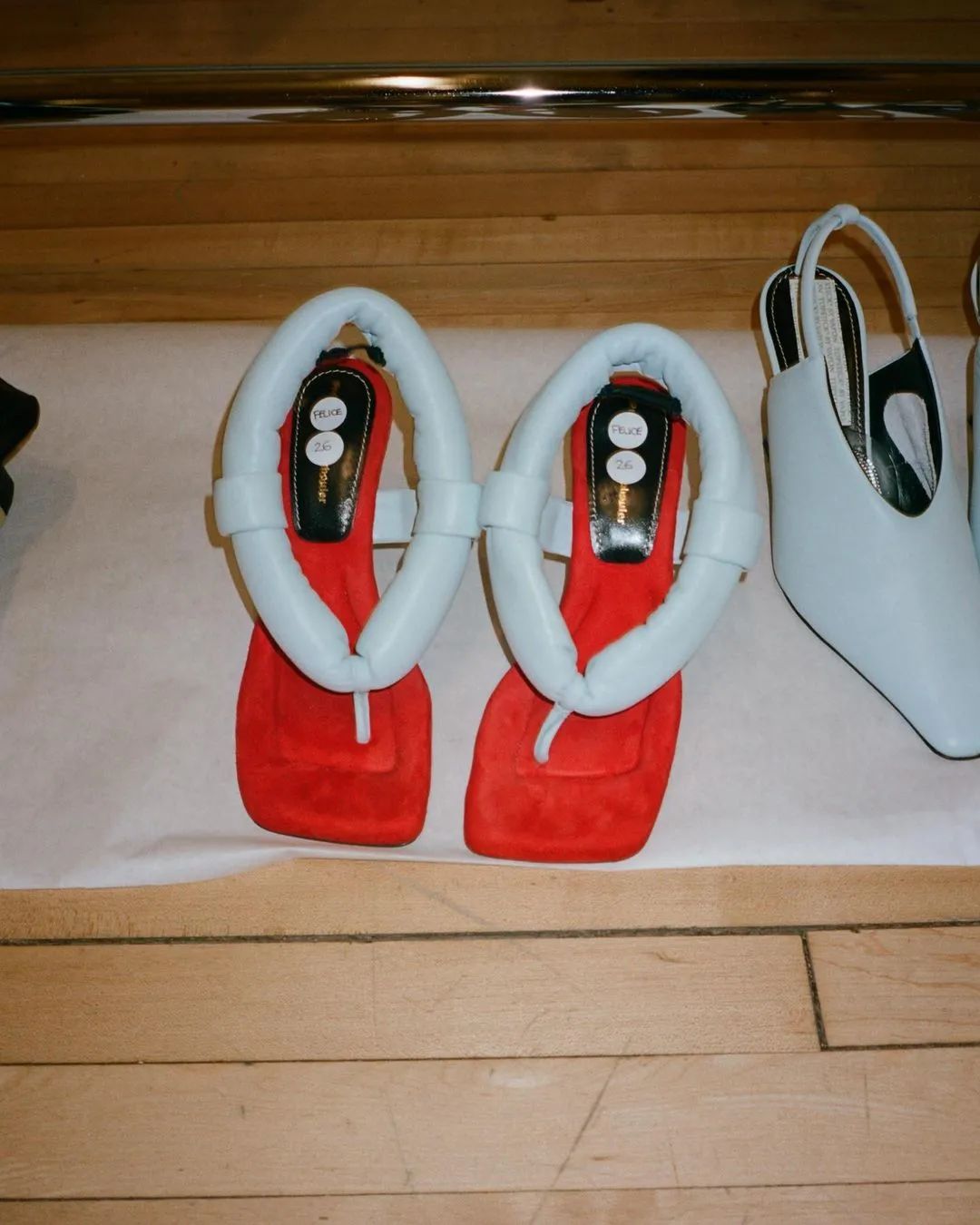 還有更過分可愛的方頭“羽絨服涼鞋”!已經形成了自己獨特剪裁語言的Proenza Schouler,讓人一眼便知道是該牌子的設計,建築般的規整線條,加入了充氣式的鞋帶還有點可愛。本是以“枕頭包”的設計火遍全網,現在他的“枕頭鞋”風恐怕又要刮起來了。