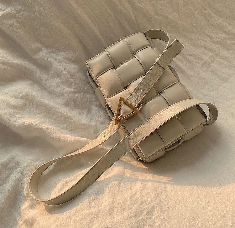 枕頭鞋+枕頭包,真是太有趣的搭配了,有沒有感覺這個春夏的街頭都活潑起來了!而“枕頭包”的名字最初便是大家給Bottega Veneta的Padded Cassette的愛稱。而名字中的Padded就是“填充過的”意思,真·羽絨枕沒錯了。