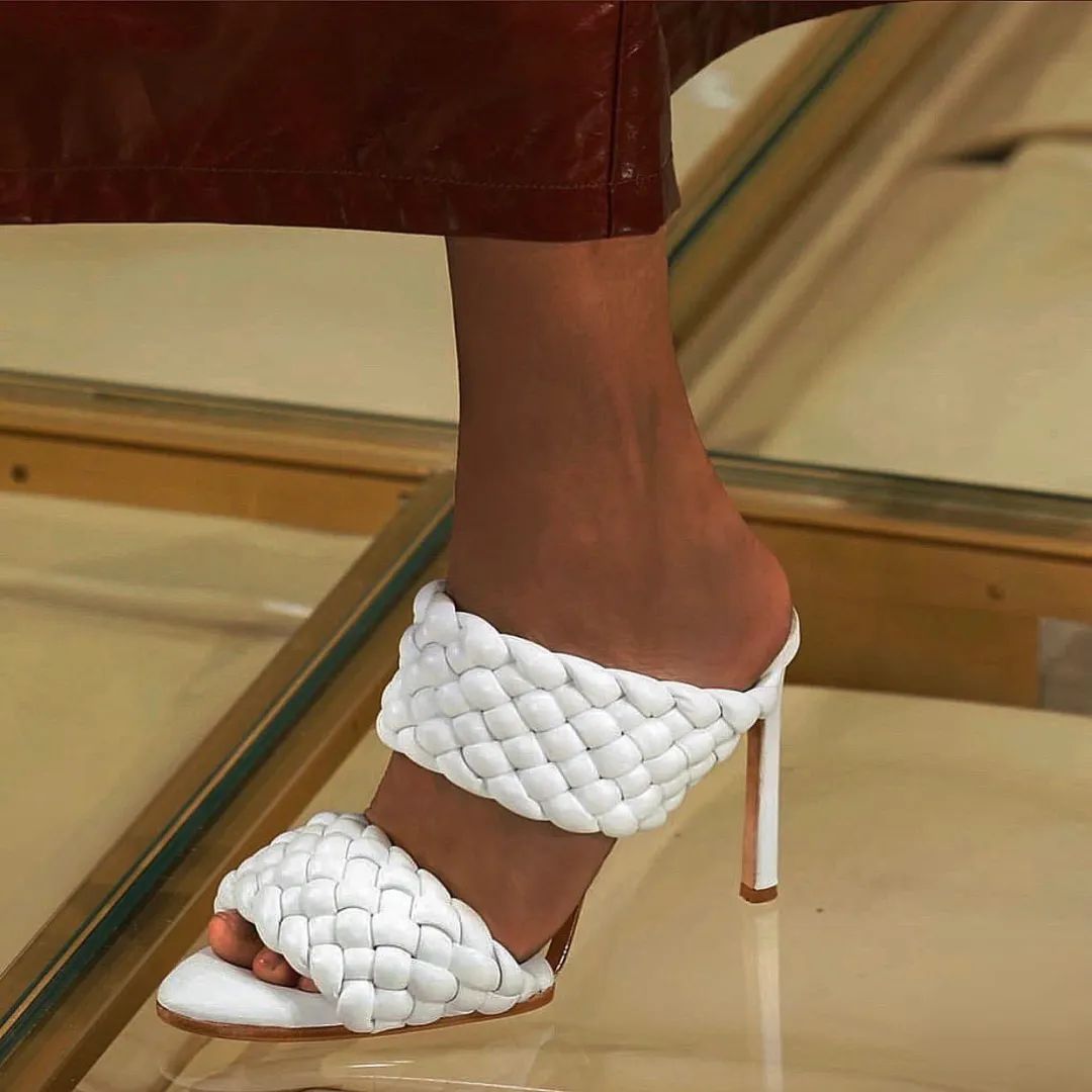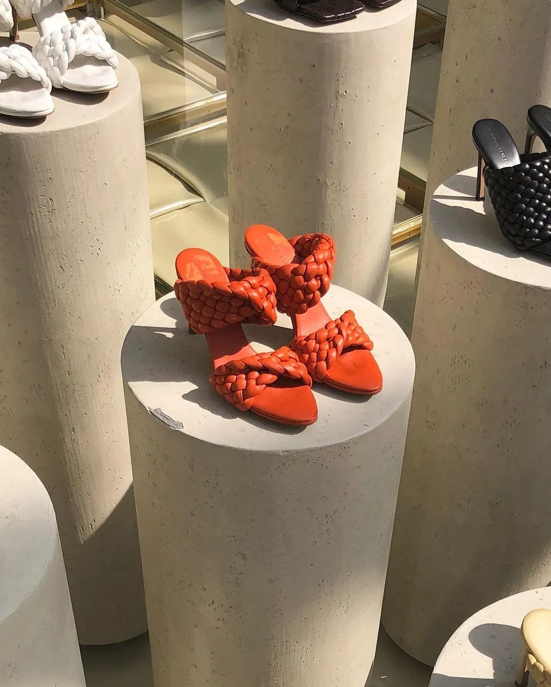 熱衷於編織元素的Bottega Veneta,使其鞋包極具標誌性。而BV更是直接將軟乎乎的春天設計在了涼鞋上。讓編織圖案蓬蓬起來之後,彷彿充了氣的小枕頭。這雙出現在2020春夏系列的高跟鞋,有著BV經典的編織元素,與上文的枕頭包有著異曲同工之妙。充了氣的編織鞋實在太可了,看著就是雙難得舒適的高跟鞋。