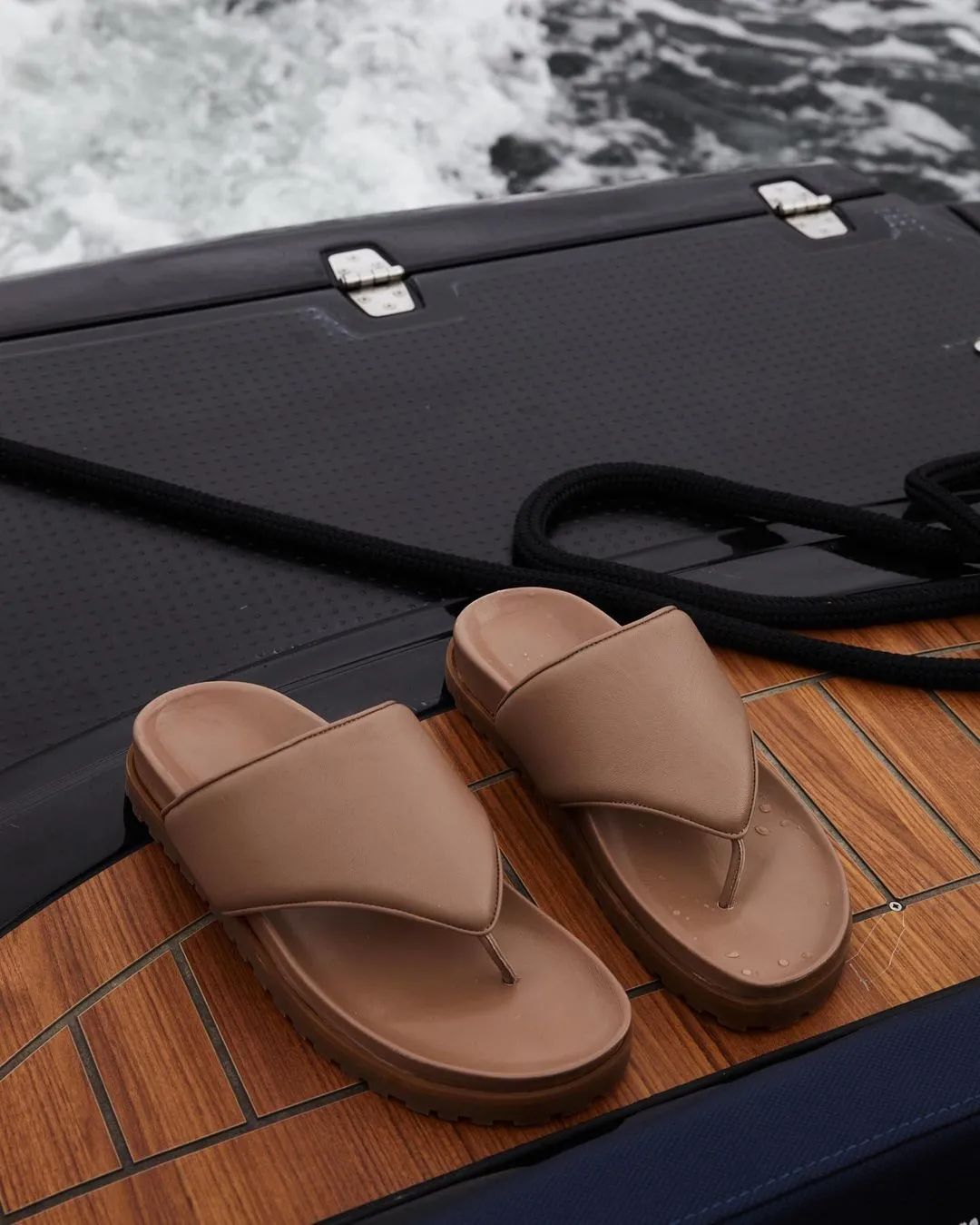 Simona Marziali的充氣式鞋帶+方頭設計的人字拖有沒有很有新鮮感。