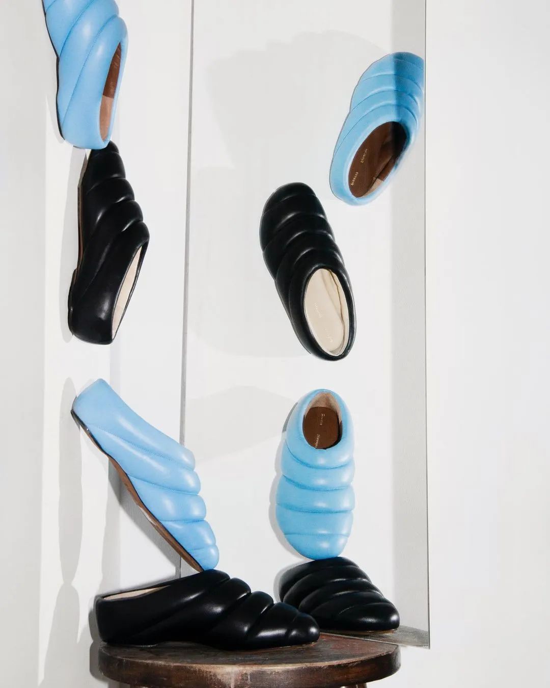 Proenza Schouler也出了一款踏實感滿滿的枕頭拖鞋。“抱鞋睡覺違法麼?”