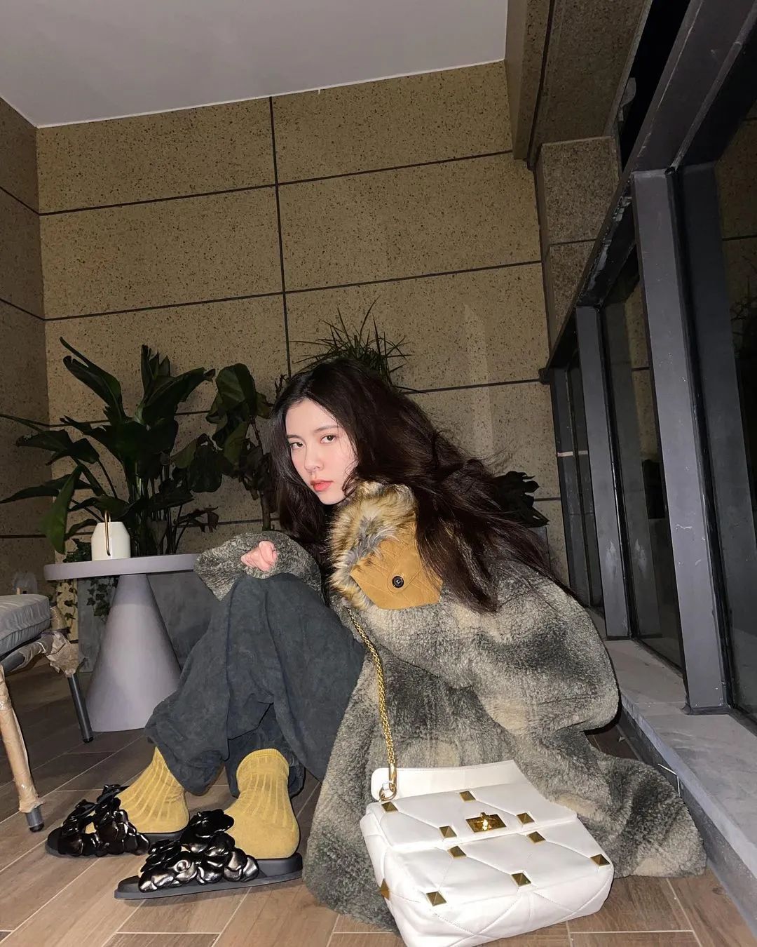 我們國內女星也紛紛抵不住這樣柔中帶剛有趣的設計了,最經典的鉚釘元素與胖胖的質感的結合。你,被“釘”住了嗎?
