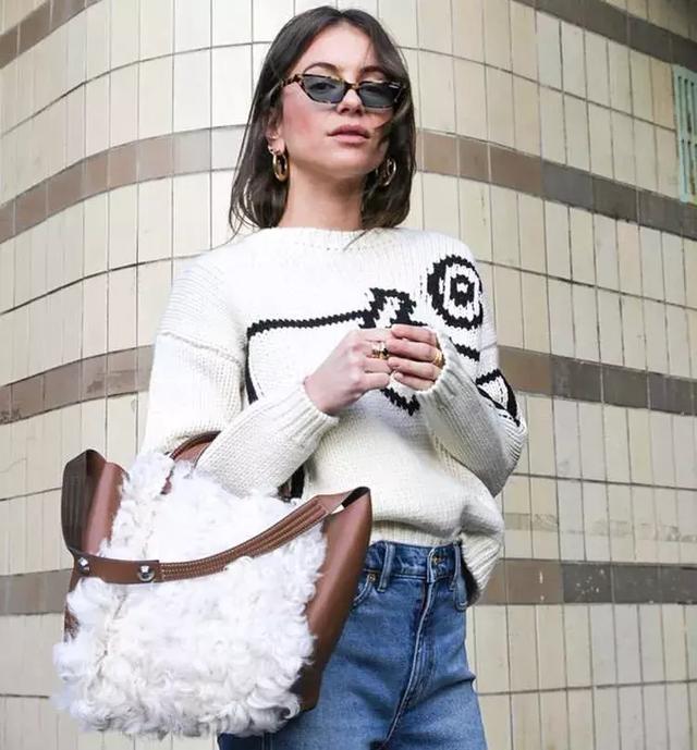 還有一種打造層次感的方法是利用圍巾或方形絲巾。比如綠色毛衣搭配藍色牛仔褲,雖然好看,但綠色其實還挺挑膚色的,這種時候搭配一條米色的大圍巾,不僅可以弱化彩色的濃烈,襯托出好膚色,同時整體穿搭也多了層次美。大家在穿紅、綠、紫色等等一些比較挑膚色的毛衣時,可以參考這個搭配細節。