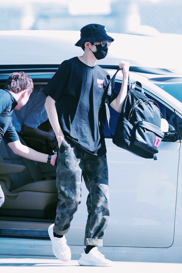 整體衣裝都採用深色,鞋子可以直接選擇更加亮眼的白色來形成對比。雖說大多數時候深的配色要置於下部,但小白鞋是增添輕盈感的良品,放在黑色系搭配中反而十分和諧。