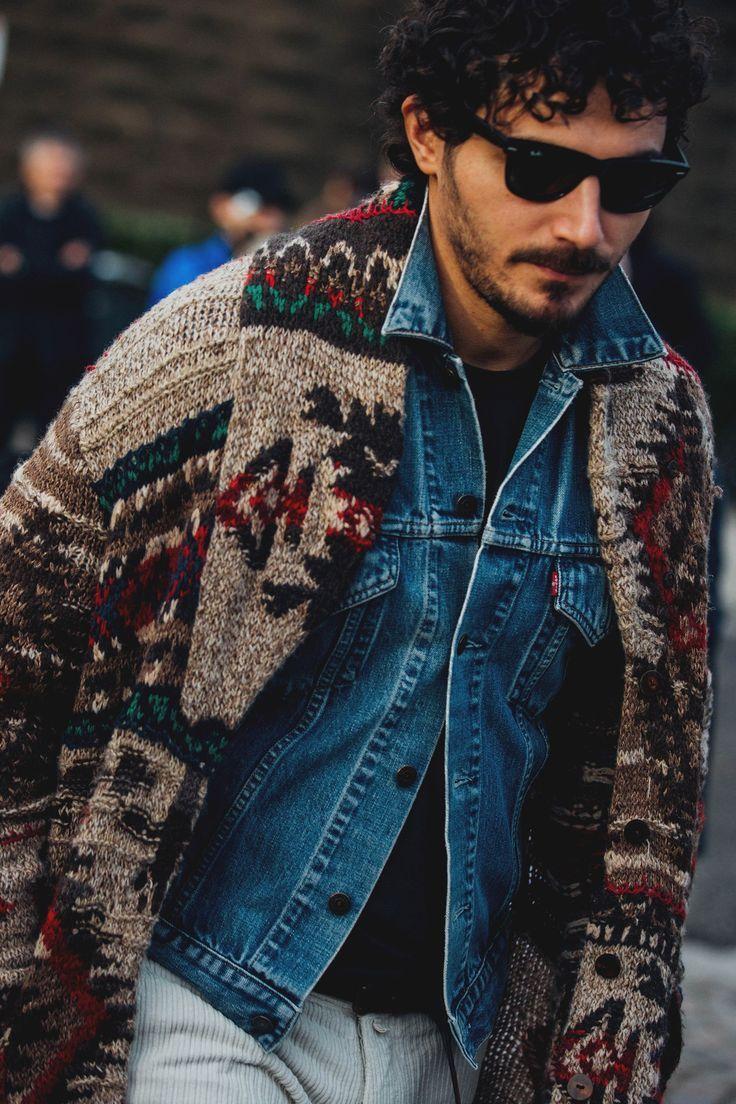同樣的,選擇跟牛仔外套風格相差較大的西裝外套,也能製造這種和諧的衝突效果。