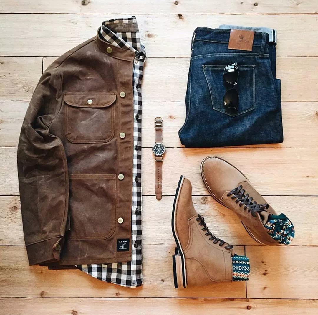 格子襯衫作為打底的時候,也可以穿出不一樣的感覺。不過要像下圖一樣,搭配這樣的直筒牛仔褲,對身材還是有一定要求的。