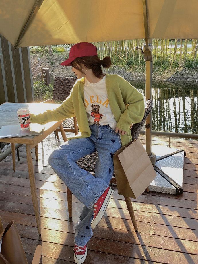 幸好,與牛仔褲搭配,時尚與舒適全都有。錐形褲管、個性圖案、性感拖鞋,將腿部修長線條悉數呈現,算是有驚無險。