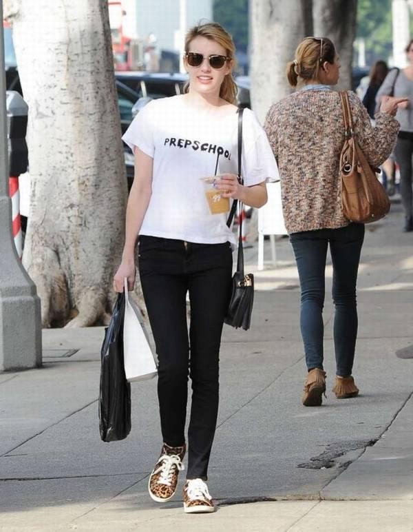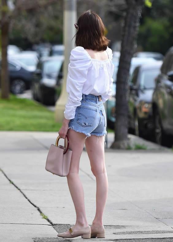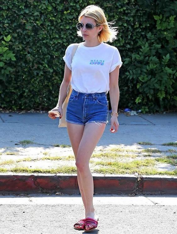 艾瑪的私服,就是對要么長、要么短的有力證明。夏天的牛仔短褲,她穿得是那麼理直氣壯!搭配簡單T卹,大長腿的優勢一覽無遺。