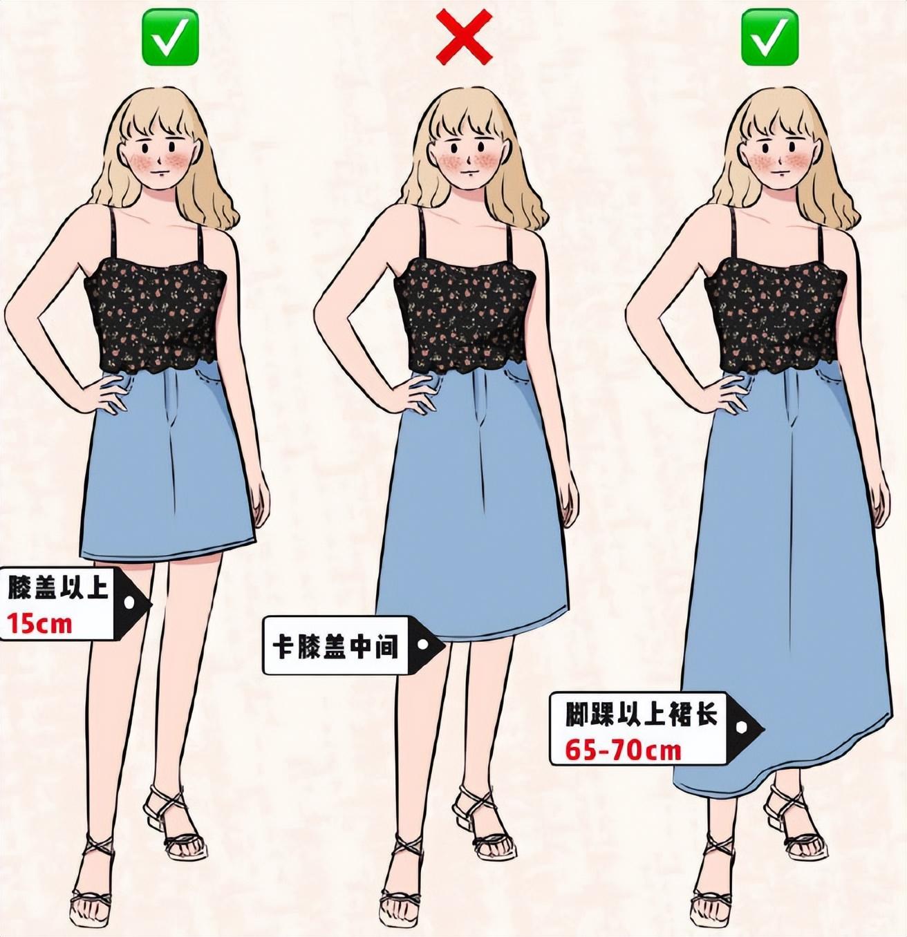 穿好顯高比例,對於下裝的長度,請一定控制好。要么膝蓋以上、要么小腿最細處,最忌諱不長不短的中間位置。