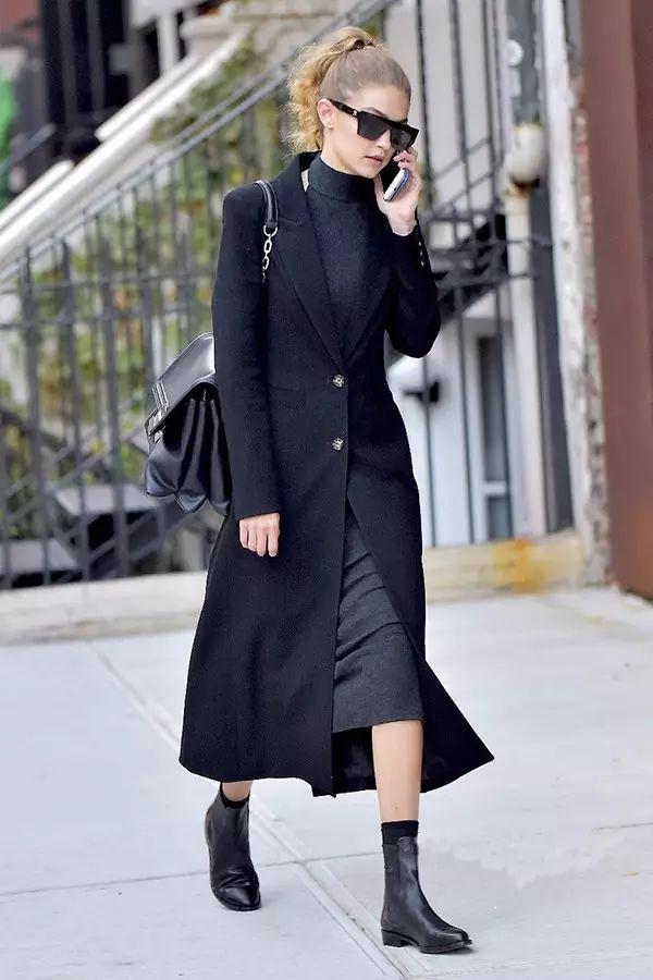 切爾西靴纖細的版型會讓腳部和腳踝看起來十分修長,黑色與黑色的搭配,更能夠拉長下半身的比例,對於秋冬顯瘦顯高,是非常討巧的搭配法。
