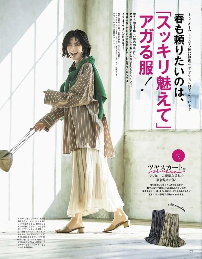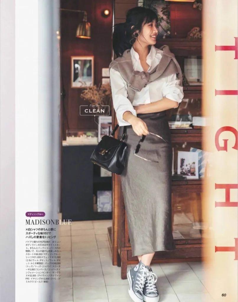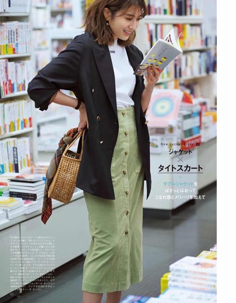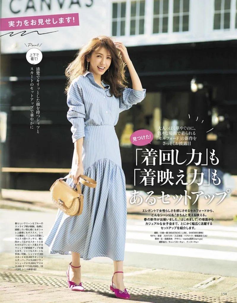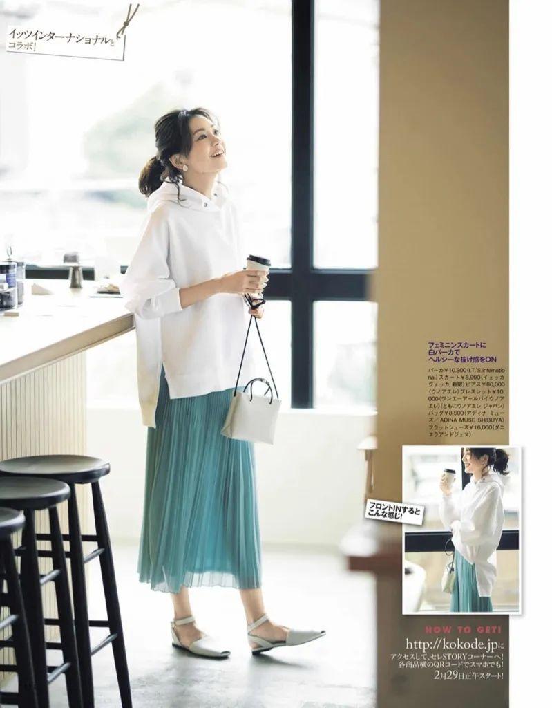 在日雜中,小編最喜歡的便是襯衫+半裙,尤其同色系的半裙,高級有氣質。