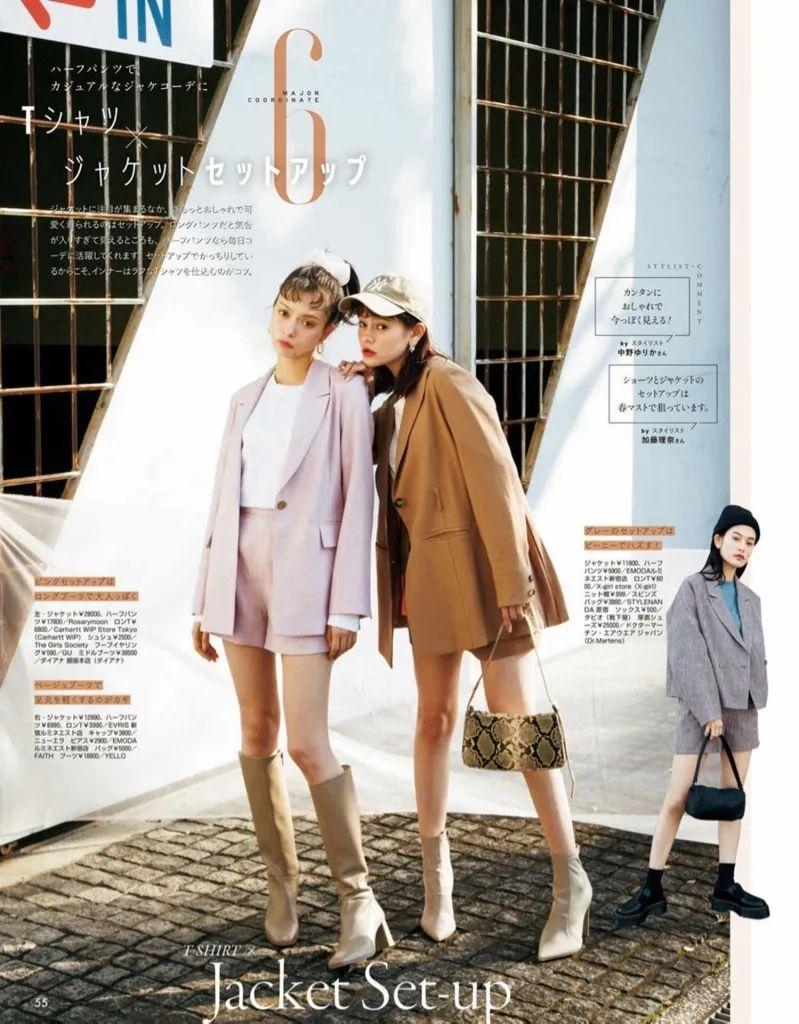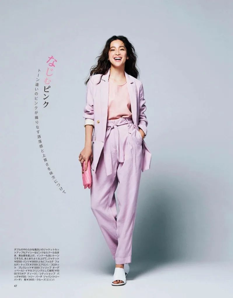 西裝套裝結合了冰淇淋色就特別有春天的氣息,內搭T卹、襯衫,然後腳踩高跟鞋或者平底鞋都能颯氣十足。