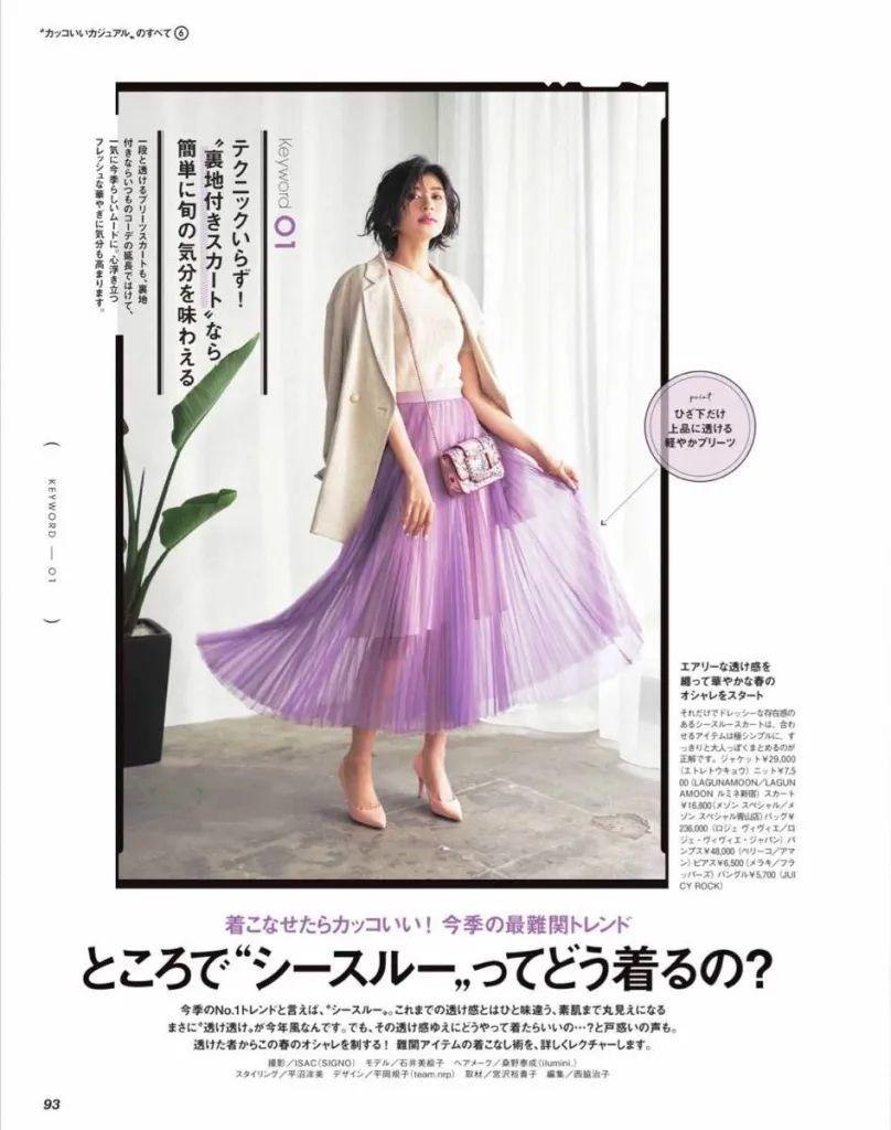 白色襯衫+白色百褶裙,許多雜誌都安排了這一look,這身穿搭對於許多找不到合適白色連衣裙的人而言,是個不可多得的好靈感。