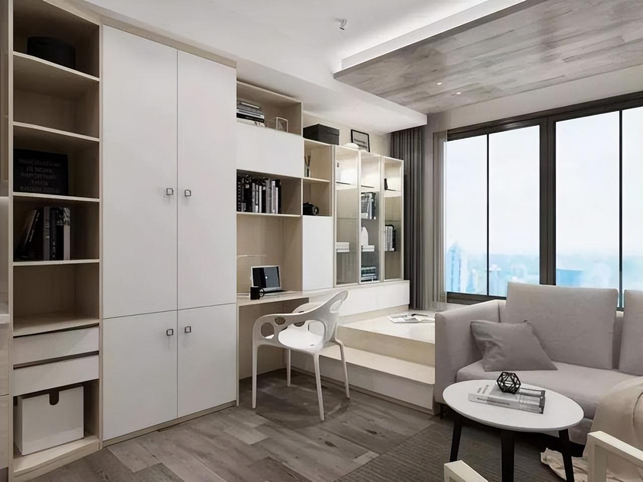 或者設置U型的榻榻米連結著書櫃書桌,把書櫃裝到書桌的後面,方便轉身就能拿到想要的書籍。