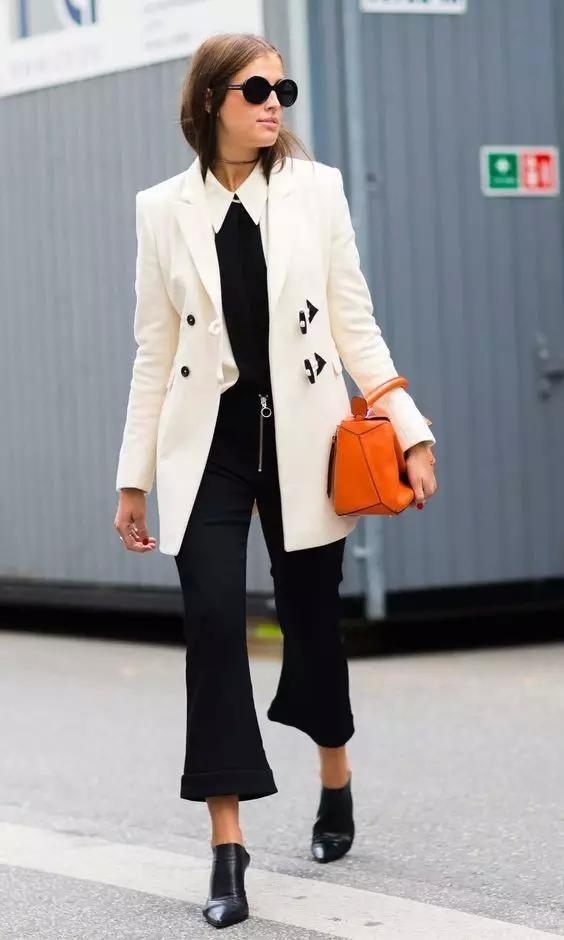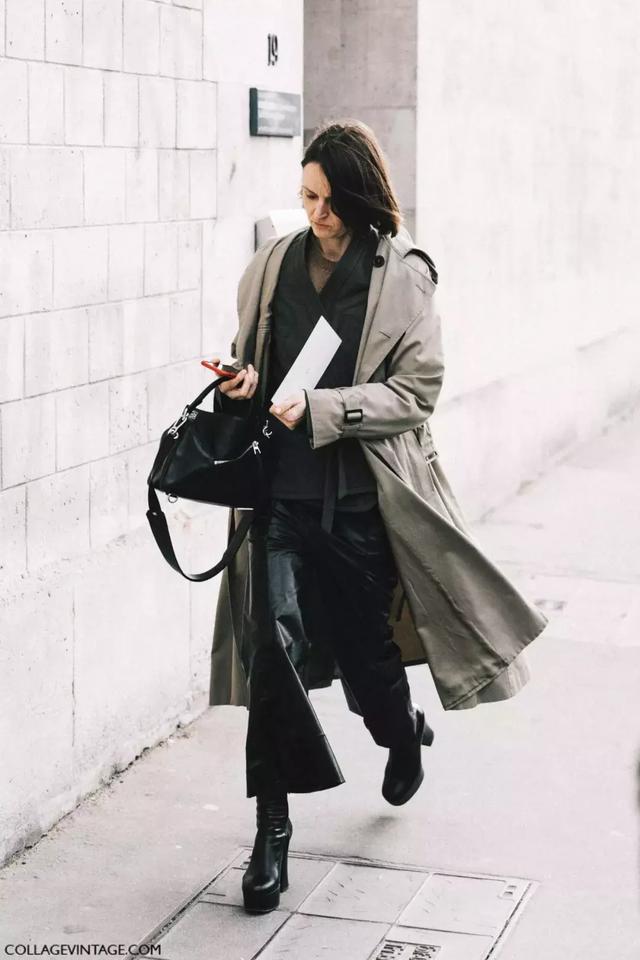 中長大衣搭配喇叭褲,時裝性巨強!這麼穿上班也OK,比男朋友還要酷一點!在短靴挑選上,建議大家別選恨天高!