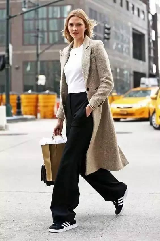 喇叭褲十分搶鏡,但是這類大衣會格外顯老,不如搭配最日常的大衣,無論是修身還是oversize,無論黑色還是駝色都要看起來隨性很多!