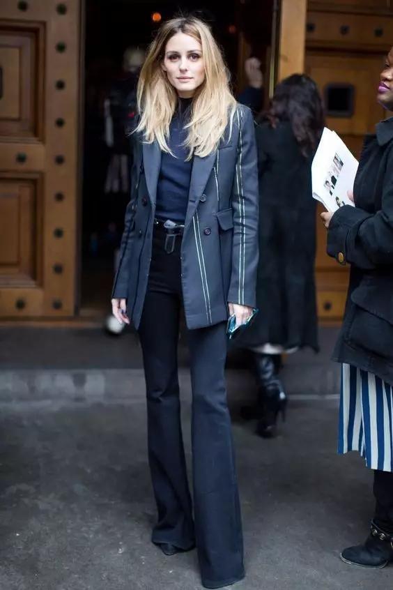 雖然喇叭褲十分搶鏡,建議不要搭配格紋大衣,格外顯老,不如搭配最日常的大衣,無論是修身還是oersize,