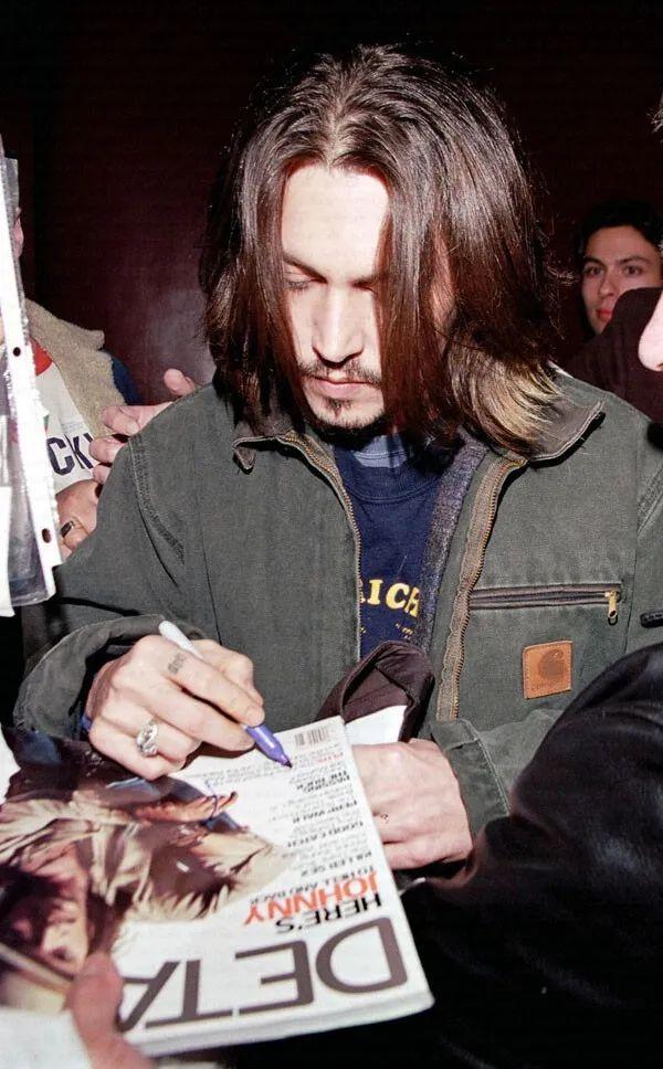 值得一說的是,德普從年輕時開始就一直是Carhartt工裝夾克的忠實追隨者之一,也是一開始就搭配著牛仔褲和工裝靴來穿,這倒符合他“流浪漢”風格的審美。