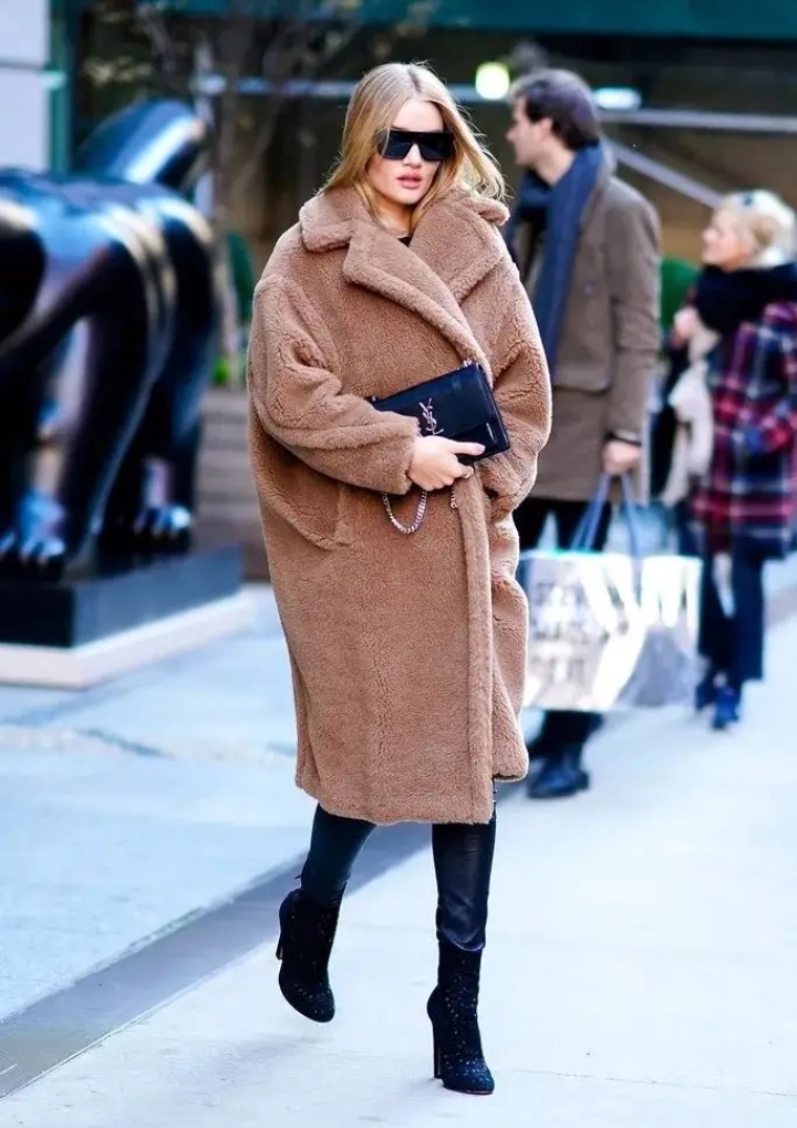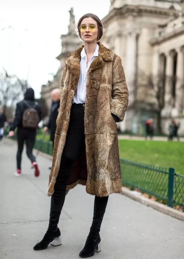 棕色系的漸變色皮草大衣顏色既沉穩又不失規律性和層次感,在視覺上展現了滿滿的高級感,飽和度低消退了皮草大衣本身所具有的厚重感,使面料看起來更加的輕薄和輕盈,既時尚又達到了保暖的效果。無論是內搭一件簡單的襯衣還是修身的針織衫,都能將40+女性的知性和成熟展現出來。