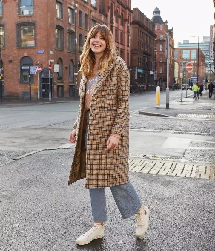 除了千鳥格大衣之外,棋盤格大衣也是一個不錯的選擇。棋盤格大衣屬於清新派的單品,其格子方正,排列組合規範,給人一種十分整潔和乾淨的感覺。