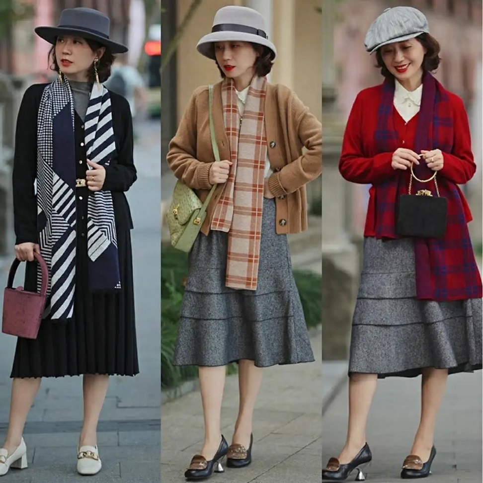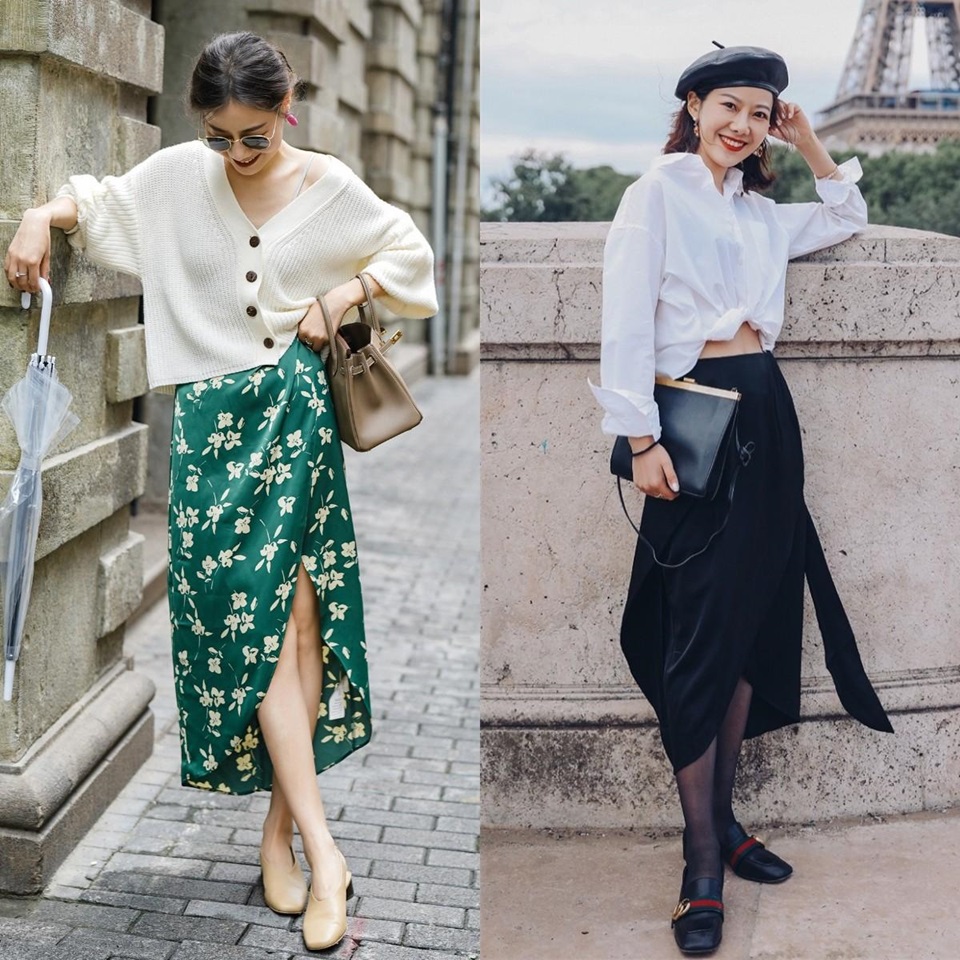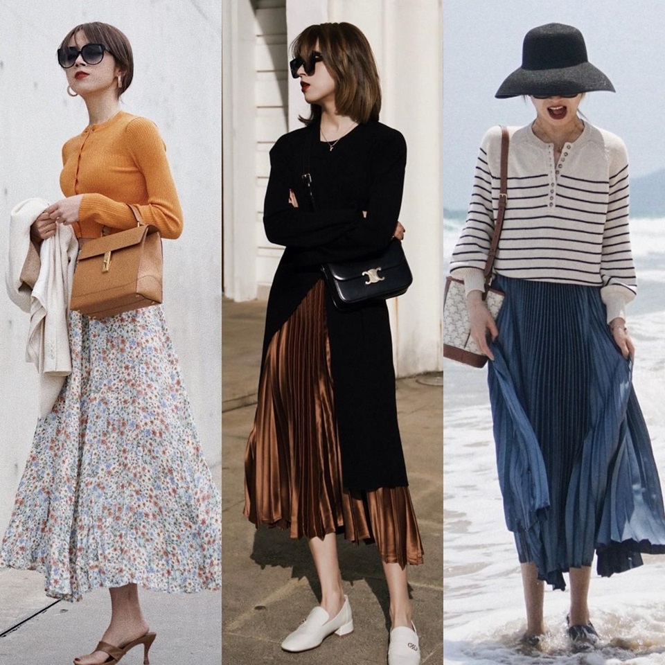 在圖案和顏色上,可以根據上衣的款式和顏色來決定:簡約的上衣可以搭配圖案豐富的長裙,而如果上衣已經足夠搶眼,裙子則應選擇更為低調的設計。裙長最好在小腿中下部或接近腳踝,以優化整體比例。