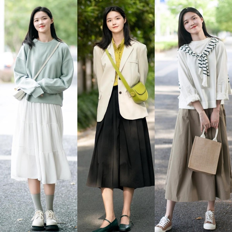 「短上衣+半身長裙」的另一個魅力在於它提供了廣泛的風格選擇。無論是選擇休閒風格的T卹或針織衫搭配飄逸的長裙,還是選擇更為正式的短夾克搭配優雅的半身長裙,這種組合都能呈現出不同的風格。