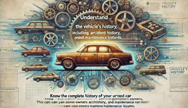 了解您的中古車的完整歷史,包括它的前任車主、事故歷史、維修記錄等。這些資訊可以幫助您更好地評估車輛的狀況和潛在的維護問題。