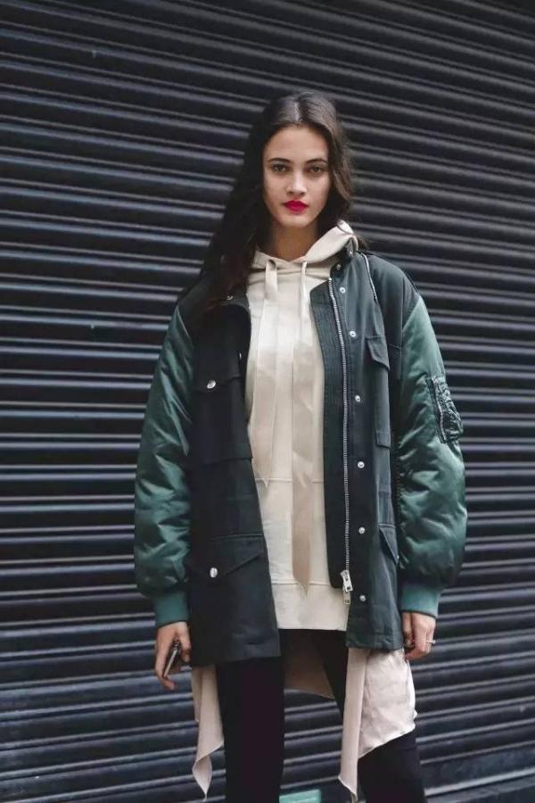 看起來就給人感覺很溫暖的夾克外套搭配衛衣,也是不少活力少女鍾愛的穿法。